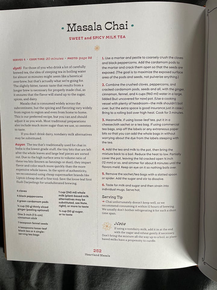 Heartland Masala by Jyoti and Auyon Mukharji is so good. The bean chapter alone is intoxicating—I’m not joking! (I would never joke about beans.) But also the book is so beautiful and stylish and the recipe for chai is simply the best I’ve ever tried. Full disclosure: Auyon Mukharji is in the band Darlingside, which my family has been obsessed with forever, so I preordered his and his mom’s book in a kind of weird fan way, but I’m really glad I did.