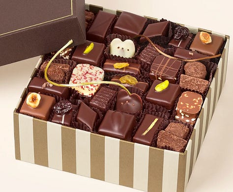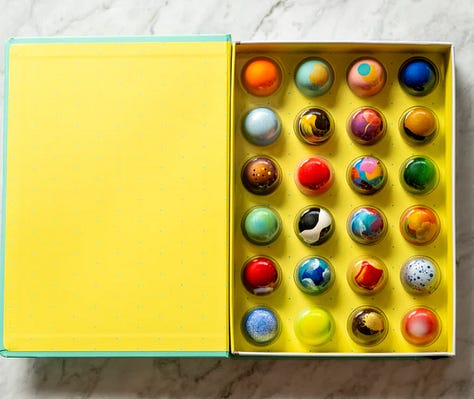 Oh, chocolates! I have a hard time sending gifts that aren’t boxes of chocolate. In fact, I recently had occasion to thank a lot of people, and I sent three different kinds! Always, always Burdick’s, which are appealingly small and delicious and some of them are shaped like animals and they’re festively crammed into a box (also, if you’re ever in Cambridge, go and get a cup of hot chocolate there zomg). And then my friend Joanna Goddard recommended these to me, and they were delightfully well received! (You can find her original rec on this amazing Cup of Jo gift guide.) And, finally, I have become obsessed with these, first gifted to us a month ago by my wonderful and generous friend Laura.